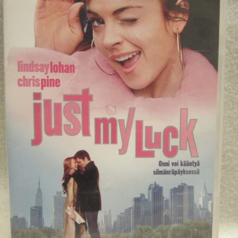 Hyväkuntoinen komedia "Just my luck", jossa pääosissa Lindsay Lohan ja Chris Pine. Tekstitys myös suomeksi. Leffa vuodelta 2006.