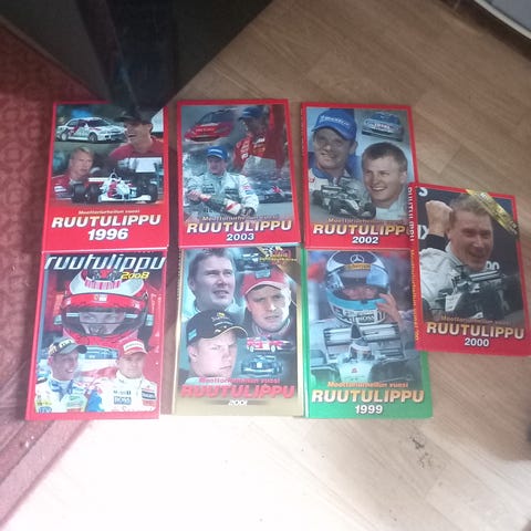 3 eri Ruutulippu - kirjaa vuosilta 1995,1996 ja 1998. Hyväkuntoiset kirjat. Kaikissa kirjoissa Mika Häkkinen kannessa.