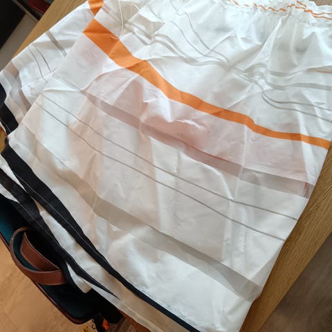ihana kuosinen verhokappa , jossa verkotanko kuja. Beige /valkoinen väritys, Oisko tampellan kangasta. Ammattimaisesti ommeltu.Uusi hinta 25 e. Muutoss jäi ylimääräiseksi. ei passaa enää omaan keittiööni.