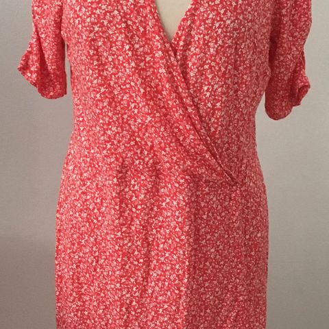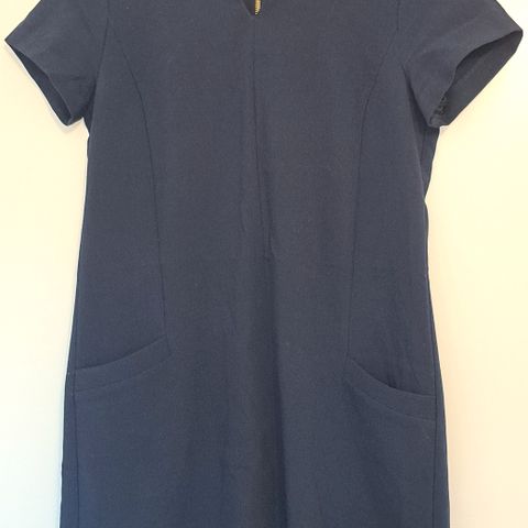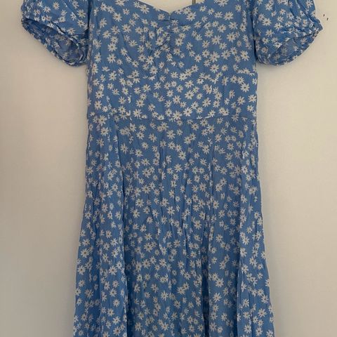 Kaunis tummansininen mekko kukkamekko. Erillinen solmittava vyö (vyönauha). Edessä napitus, kolme avattavaa nappia. Merkki Lindex ja koko XS