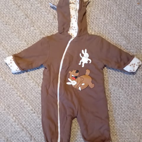 Jutta vanuhaalari, jossa käännettävät hihan- ja lahkeensuut. Vetoketju aukee lahkeensuuhun saakka. Kiva pukea päälle vaunuihin nukutettaessa. Koko 68-74.