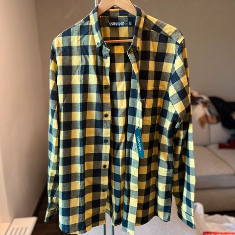 Miesten paita,edessä tasku,keltainen/musta,takana musta värinen,merkki Jaspal Tailors.