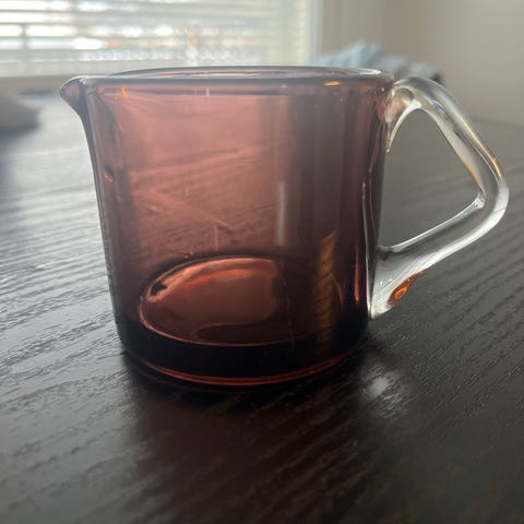retro vanha wanha vintage vtg keräily torilöytö kermakko kermanekka kirkas lasi lasia lasinen britti brittiläinen englanti englantilainen kannu kaadin maitokannu 1960 60-luku 60 luku mcm