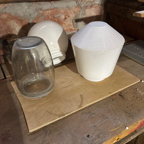 Uudenveroisessa kunnossa oleva sisustusvalaisin, kaunis pyöreä lämminsävyinen lasikupu.