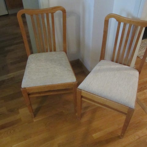 Neljä Olli Borgi suunittelemaa tuolia, Asko Export 1921-1979. Malli Kalastajatorppa n:ro 08024. Sirot kevyet vahvat tuolit, plyyssi verhoillut.