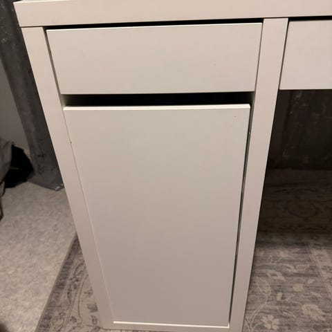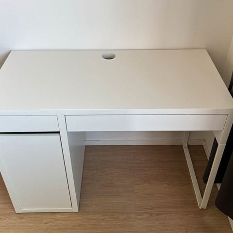 Ikean Micke sarjan osat valkoisella rungolla ja oransseilla etusarjoilla. Väri ei ole enää Ikean tuotannossa.