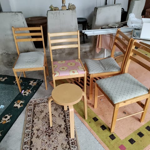Tästä edulliset tuolit! Tuolin korkeus 95cm, istuin korkeus 45cm. Kuvanmukainen. Tuolit tukevia/jämäköitä istua. Ei myydä erikseen!