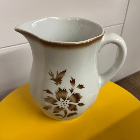 Myydään kuvan kannupari. Toinen 12cm korkea ja toinen 16cm. Vetoisuudet varmaankin 0,5l sekä 1l. Pohjalla jotakin likaa hieman molemissa, voi lähteä puhistamalla, en ole itse edes yrittänyt puhdistaa, voin kokeilla jos ehdin. Ehjiä molemmat! Olisikohan Arabian Aster näiden malli.