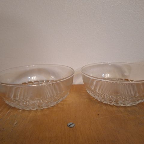 Merja jälkiruokakulho 2 kpl, Riihimäen Lasi Oy. Halkaisija 12 cm h= 5 cm . HP 8 € yht. + pk/nouto Tampereelta, sopimuksen mukaan.