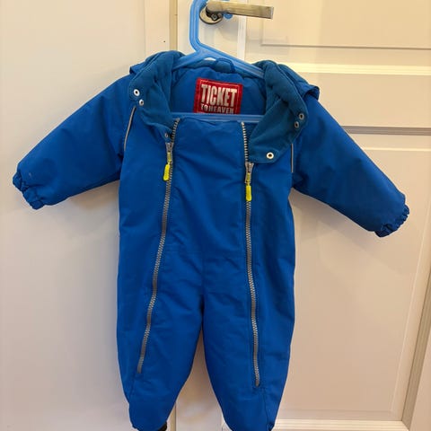 Suloinen toppahaalari, jolla on leikitty monet leikit, mutta joka suojaa vielä hyvin seuraavan lapsen. Käytön jälkeä on polvissa ja hihansuissa, ei kuitenkaan reikiä/melkein-läpi-kulumia eli yleisilme kuitenkin siisti. 🙂 Lahkeissa kumppareille napit mutta ei kumppareita mukana.