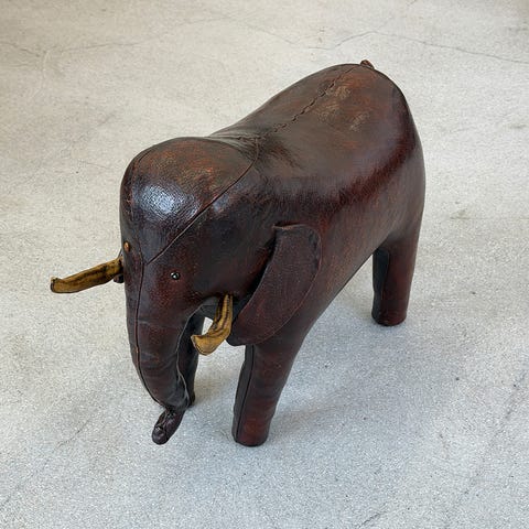 Selling pair of rare original German Deru leather chimpanzee monkey and leather elephant handcrafted from single leather piece in 1960's, in pristine condition. Size height 18 cm and 16 cm. Collector's items. Price is for both. Shipping costs added.