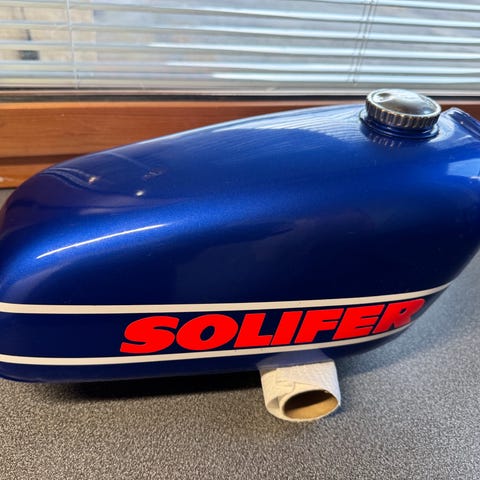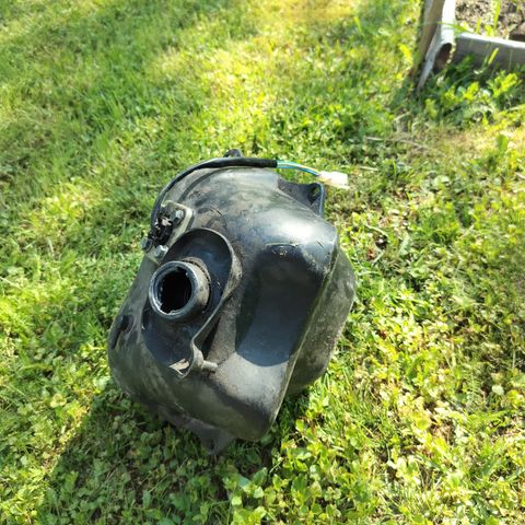 Kuvanmukainen ehjä polttoainesäiliö korkilla. Ollut solifer XTR50 skootterissa.
