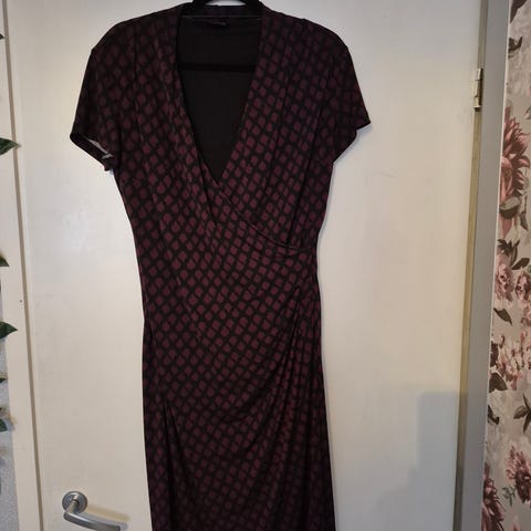 Janina F merkkinen mekko kokoa L. Vasemman puolen helma edestä pidempi. Vyötäröllä kiinteä rusetti.