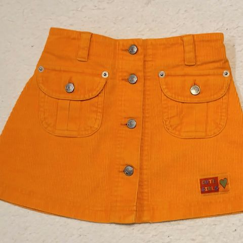 Ihana pikku tyttöjen hame. Takana hieno kukkabrodeeraus. Etupuolella tasku ja neonkeltaiset nauhat.