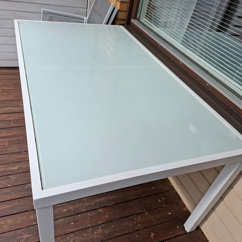 Myydään kunnostettu valurautainen ulkopöytä.Mitat: leveys 116 cm, syvyys 62,5 cm, korkeus 62,5 cm.