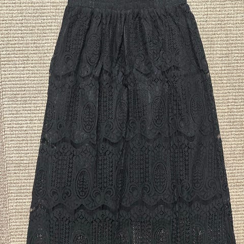Myydään kuvan käyttämätön JDL pitsihame. Mitta vyötärönarun kohdalta n. 42 cm, pituus n.64 cm. Hametta voi käyttää myös shaalina.
