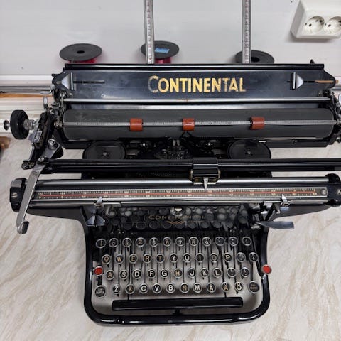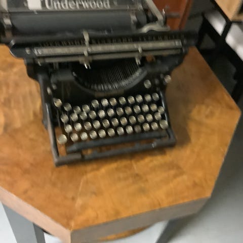 Ikäisekseen hieno Underwood kirjoituskone,joka on joskus ollut toimiva ja kirjoittelin sillä itse 50 vuotta sitten.Mustenauhat vuosien saatossa irronneet pois paikoiltaan.Toisessa päädyssä kaiverrus SA(Suomen Armeija?),jossa aikanaan huutokaupasta ostettu.Hae pois 65 eurolla.