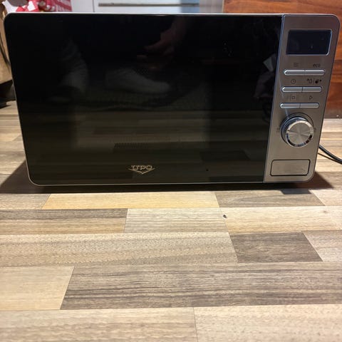 Teho max. 800 W ja aikakytkin 60 min. Pyörivä lautanen (halk. n. 36 cm) ja muovirengas rullineen. Mikrossa on toimiva valo sisällä.