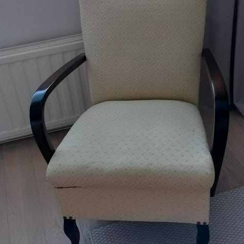Entisöity nojatuoli, mokkajäljitelmäkangas. Nouto, maksu käteinen tai MobiliPay