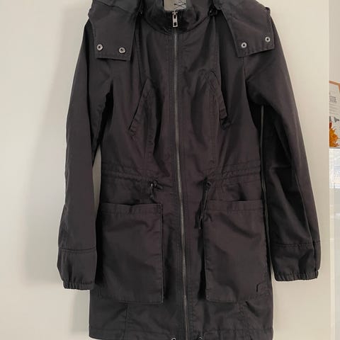 Sopinee koolle L ja XL. Kuva ei tee oikeutta. On tosi kiva takki ja täysin musta