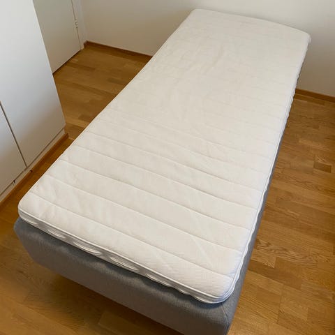 Hinnassa huomioutu että sängyn oikealla puolella on verhoilussa muutamat pienet reiät (kyynärpäätuelle).