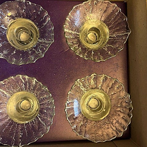 Lasiset kynttilänjalat korkeus 19 cm leveys 21 cm halkaisija 12cm