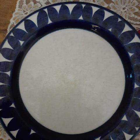 Keittolautasen pohjapuolella iskeymä. Muissa ei iskeymiä, halkeamia tai naarmuja.