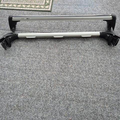 MontBlancin kattotelineet. Sopivat ainakin Audi A3:een. Kattotelineissä on iän ja käytön mukaista kulumaa, mutta niitä on käytetty todella vähän. Kolme kertaa on tuotu joulukuusi kotiin ja kerran haettu tikkaat. Niistä kuului ajettaessa ujellusta nopeuden kasvaessa.