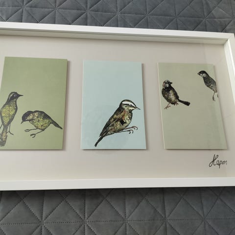 Myynnissä 3 kpl pientä lintutaulua puukehyksissä yhteensä 2€