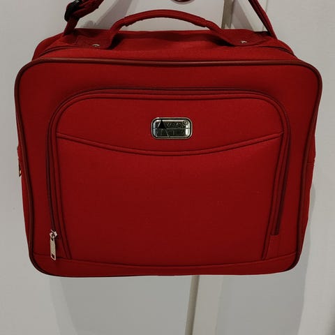 Raidallinen kangaslaukku, 33cm x 21 cm, hihna 30xm, Uutta vastaava, hinta 5e