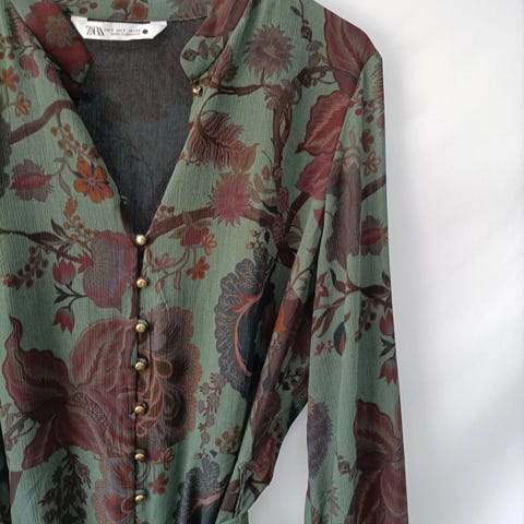 Zara Basic vihreä jakku, koko S, 94% viskoosi, 6% polyesteri, kevyt päällä, vyötäröllä kiristysnauhat, hihat mahdollista napittaa ylös.