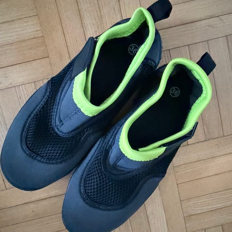 Arena ranta/uimahallijalkine junnuille. Suojaa niin merisiileiltä ja teräviltä kiviltä kuin liukastumiseltakin allasolosuhteissa. Materiaalina pehmeä PVC. Kerran uimarannalla käytössä olleet.