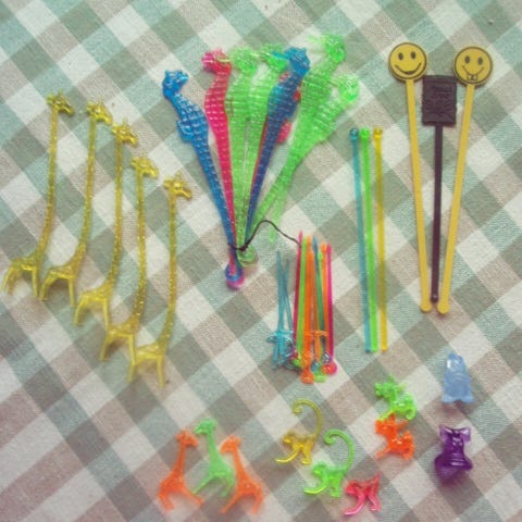 Tällä voi leikata coctaipaloihin sopivia paloja. Pakkauksessa on neljä erimuotoista leikkuria: ympyrä, ovaali, kolmio ja neliö. Aika kiva vintagejuttu vaikka valmistaa coctailpaloja yhdessä.