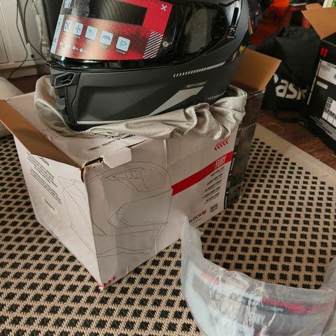 Kypärä ostettu 2022, ollut päässä n. 10 ajoreissulla. Myydään koska on omaan päähän inan liian pieni. Mukaan suoja -ja säilytyspussit