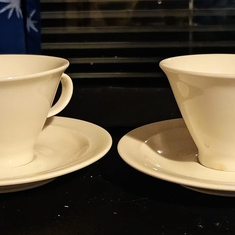 Myytävänä myös kahvikuppi+aluslautanen, asetti-settejä 7 kpl, 16 €/setti.
