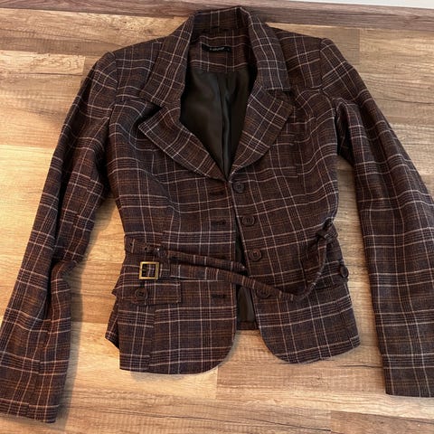 Beige bleiseri, koko 42, edessä taskut, kevyet olkatoppaukset.
