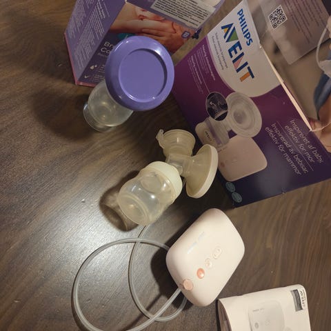 Tarvikkeita vauvalle: rintapumppu, mikrosteriloija, pullonlämmitin, pulloja