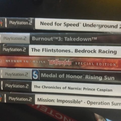 Kuvassa näkyvät Playstetion 2 / PC pelit