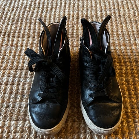Kerran sisätiloissa käytetyt vaaleanpunaiset Minna Parikka kengät. Koko 28.