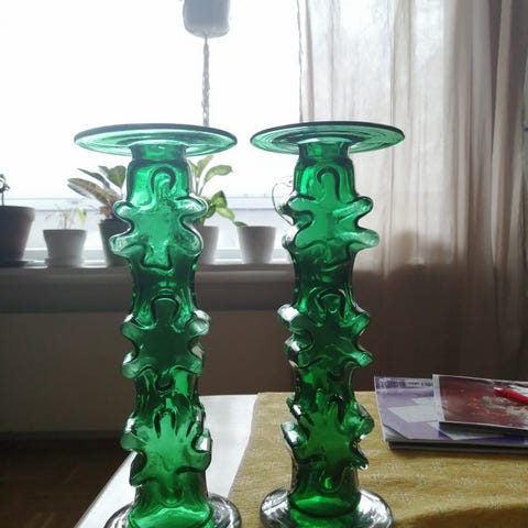 Riihimäen lasi kasperi kynttilänjalka, keltainen