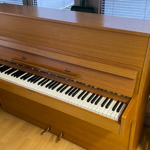 Tarjolla upea Hellas-piano, jonka koneistona on korkeatasoinen saksalainen Renner. Pianon väri on elegantti pähkinä.