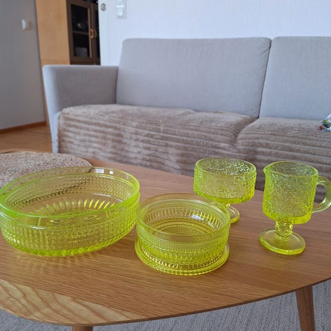 Riihimäen lasi Jesperi sokerikko ja kermakko, kelt