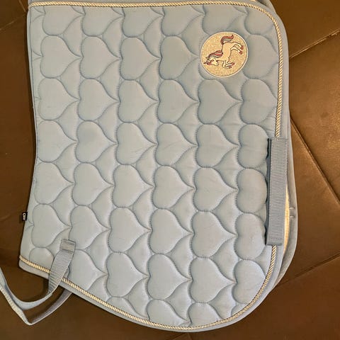 Pony kokoinen Gold Medal satulahuopa. Koulumalli. Materiaali on kestävä ja hengittävä, ja huopa on varustettu kiinnitysnauhalla satulan pysymiseksi paikallaan.