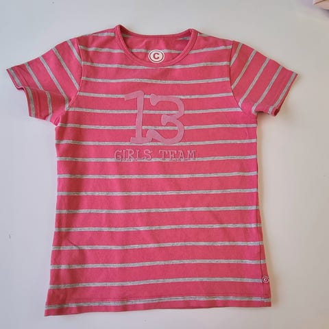 Hellou Kitty punainen raidallinen pusero koko 128cm. Alahelmassa iso Hellou Kitty kuva. Hyväkuntoinen.