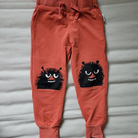 Exit punaiset housut koko 104cm. Vyötäröllä korkea resori, voi pitää käännettynä tai suorana. Lahkeissa erilaisia taskuja. Hyväkuntoiset jatkoyttöön.