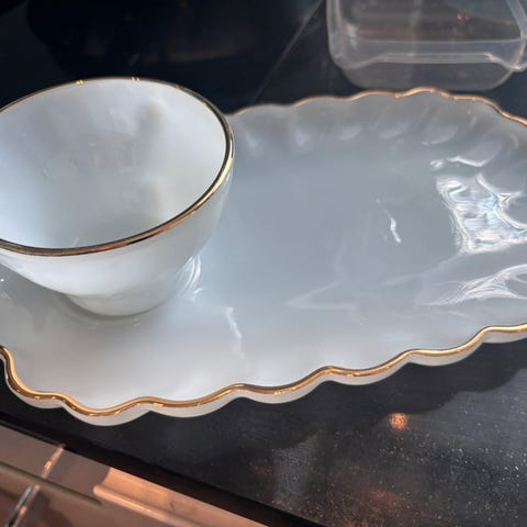 Luulasi aamiaissetti kuppi korkeus 6cm halkaisija 8,5 cm aluslautanen pituus 26,5 cm leveys 16,5 cm