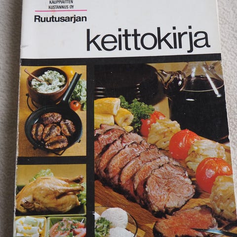 70-luvun ruokakulttuuria sisältä keittokirja. Koko 22 x 21, kierrekansio, muovipintaiset kannet (voi pyyhkiä), sivuja 117, Schildts, 2002.