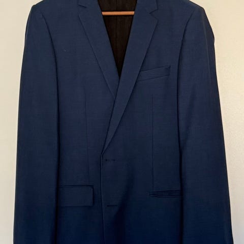 Puku on ostettu vuosia sitten sopusuhtaiselle M-koon vaatteita käyttävälle miehelle, mutta puku on jäänyt tarpeettomaksi.