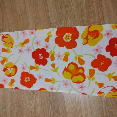 Kaksi kappaa,purettu yhdestä pitkästä. Toiset reunat,siis silitetty vain. Pysyy hyvin ja on siistit