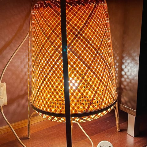 Rottinkinen lattia valaisin täysin kunnossa oleva 4-pienellä jalalla tasaisesti pitävää korkeaa 127cm valaisinta..